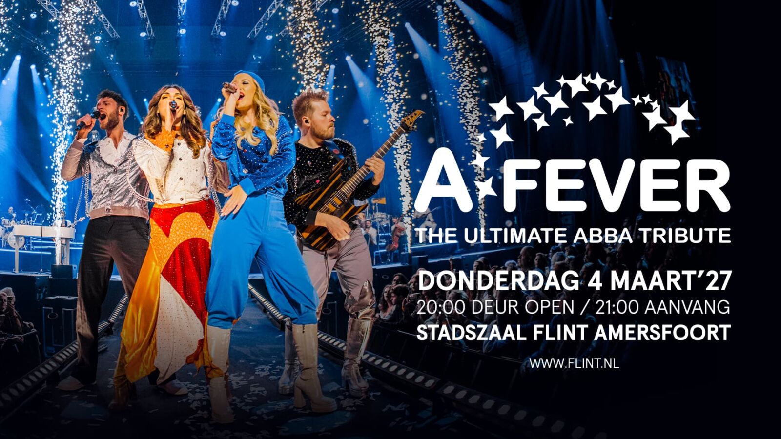 Ze stonden al op Paaspop, Festyland en de Zwarte Cross, en veroveren al een aantal zomers de festivalwereld. In de winter van 2027 komt A*Fever – The Ultimate ABBA Tribute weer naar Amersfoort. Op donderdag 4 maart 2027 staan ze met hun show in de Stadszaal van Flint. De show staat garant voor een spectaculaire avond vol meezingers.