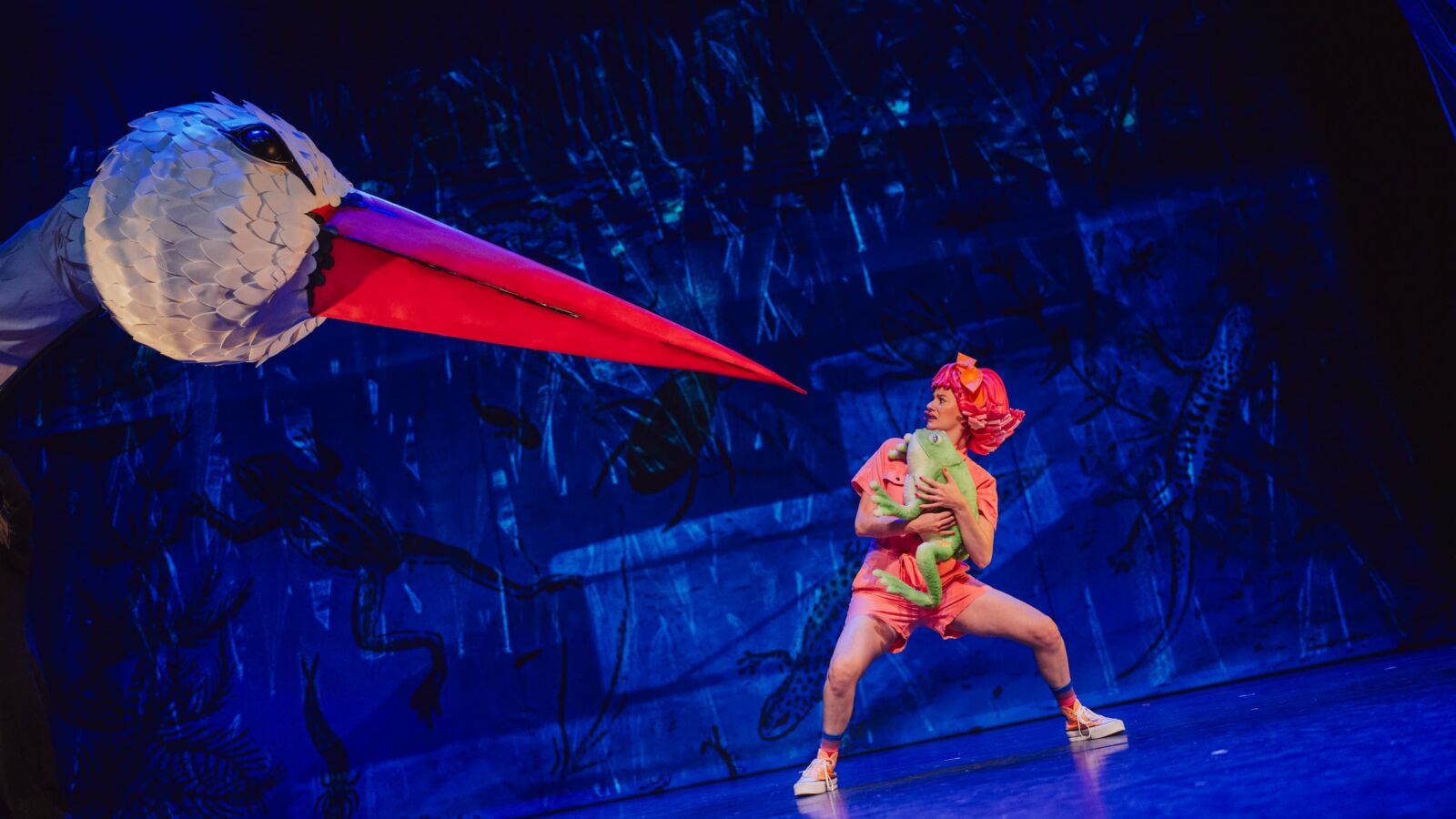 Een visueel feestje, met een groot doekendecor, projecties, poppen en schuimpruiken. Meester Kikker neemt je mee in dit wonderlijke verhaal waarin we erachter komen dat wellicht iedereen wel een diertje in zich heeft.