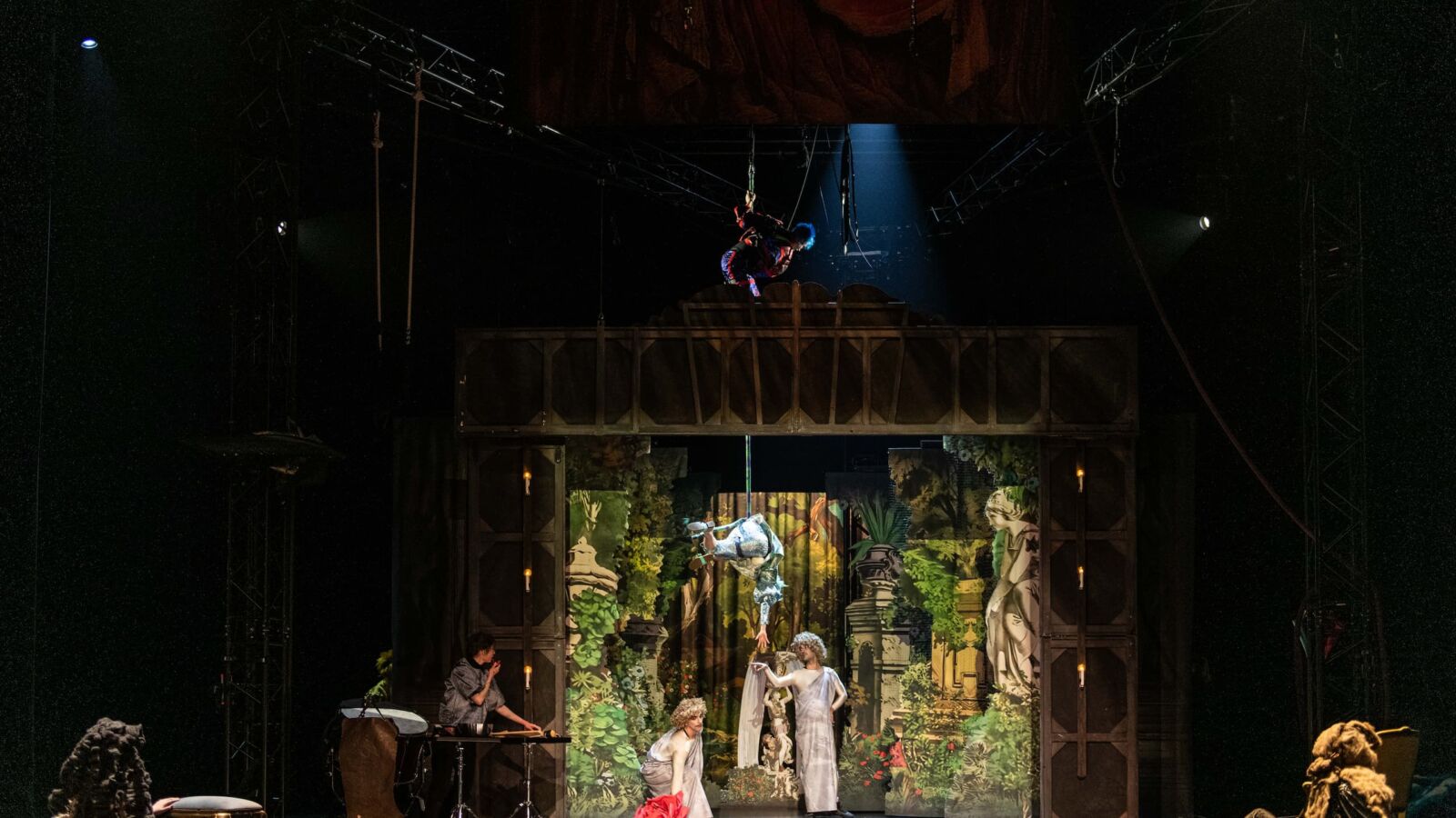 In de voorstelling zien we hoe twee goden zijn verwikkeld in eeuwenoude vetes. In een apocalyptisch landschap bestrijden ze elkaar vol vuur. De situatie lijkt uitzichtloos. Tot een circusgezelschap op doorreis bij hen strandt. Kleur keert terug, liefde bloeit op. Een happy end ligt in het verschiet!