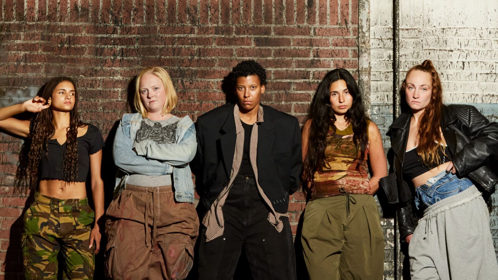 Promobeeld van de voorstelling GRIMM van ISH Dance Collective, Junior Company, Nationale Opera & Ballet. Op het beeld poseren drie dansers in een blauwe kamer. Fotocredits: Hugo Thomassen